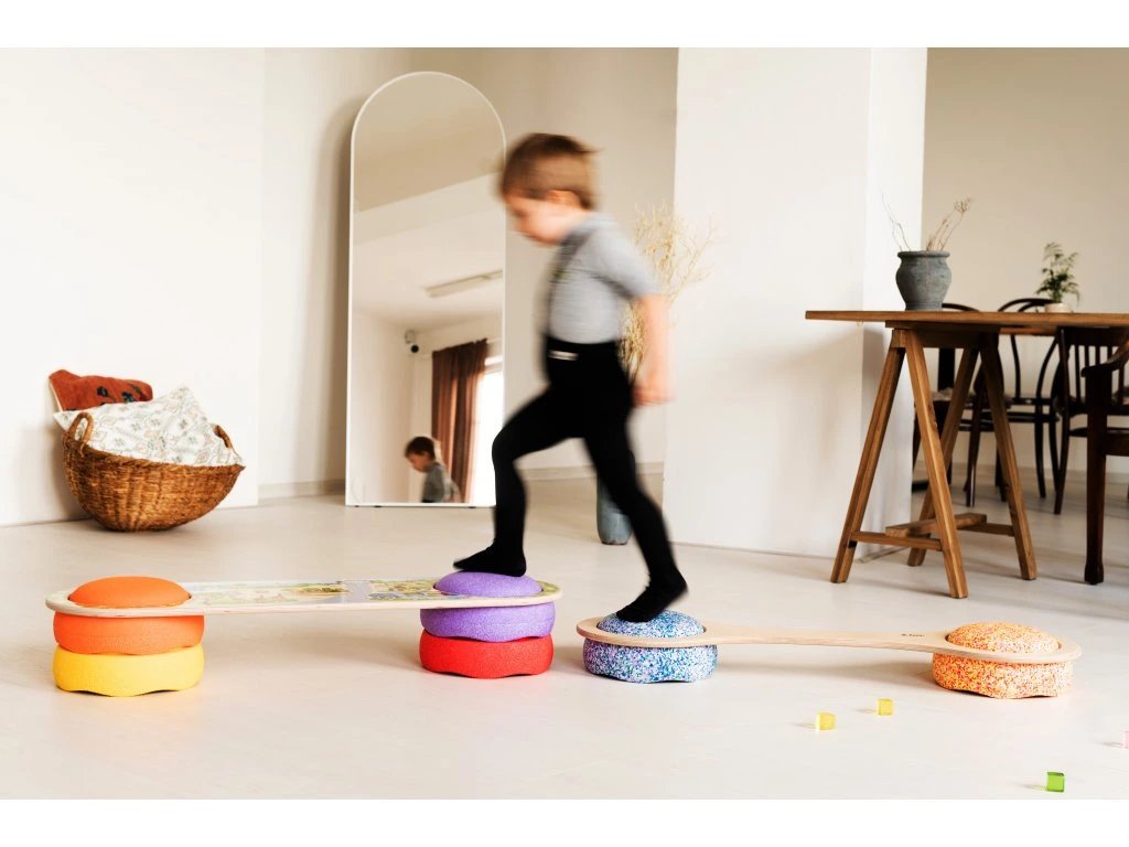 Mostky Balance Play jsou navrženy jako dokonalý doplněk k balančním kamenům Stapelstein. Kombinací kamenů a mostků vytvoříte víceúrovňovou balanční dráhu, kterou snadno přizpůsobíte věku a možnostem dětí – od jednoduchých přechodů těsně nad zemí až po náročnější sestavy s výškou a změnami směru. Vysoká nosnost 150 kg umožňuje do hry zapojit i rodiče, sourozence nebo terapeuty, takže je set vhodný i pro mateřské školy, dětské skupiny a rehabilitační pracoviště.