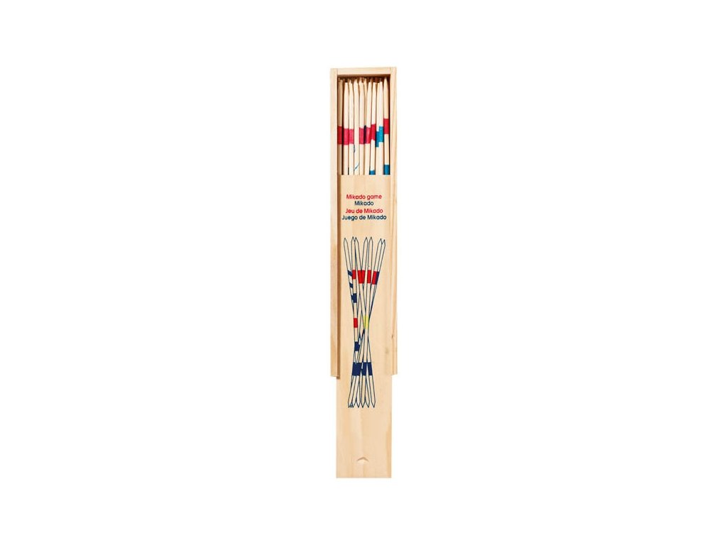Hra je dodávána v praktickém dřevěném pouzdru, které chrání tyčinky a zajišťuje snadnou manipulaci. Tento kompaktní formát je ideální pro cestování, pikniky nebo chvíle odpočinku doma. Díky své univerzálnosti a přitažlivosti se mikádo hodí jako zábava při společenských setkáních nebo jako nástroj pro procvičování jemné motoriky.