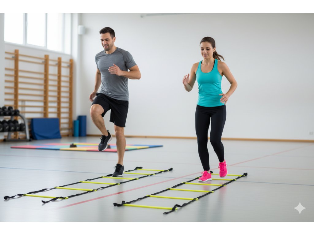 Žebřík lze položit na rovnou podlahu nebo venkovní povrch a využít pro různé vzory kroků – od jednoduchých chůzových cvičení až po dynamické sprinty a boční přeskoky. Je skvělým doplňkem kondiční přípravy fotbalistů, běžců, gymnastů i dětí v hodinách tělocviku.