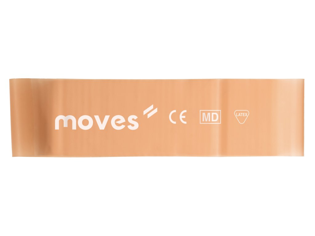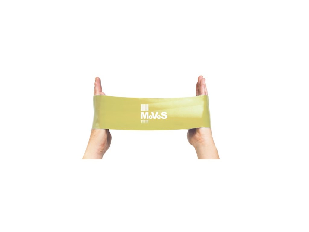 MoVeS Wide Loop je krátká „O” guma, která umožňuje procvičování většiny svalových skupin. Oproti běžným gumám je tato širší, což zajišťuje lepší a rovnoměrnější rozložení tlaku na tělo. Gumové smyčky jsou snadno přenosné, cvičení s nimi je jednoduché a vhodné jak pro domácí trénink, tak i pro tělocvičnu či cestování. MoVeS Wide Loop umožňuje různé možnosti progresivního cvičení díky různým úrovním zátěže. Tyto gumy jsou vyráběny s různou intenzitou a barevně odlišeny pro snadné rozpoznání.