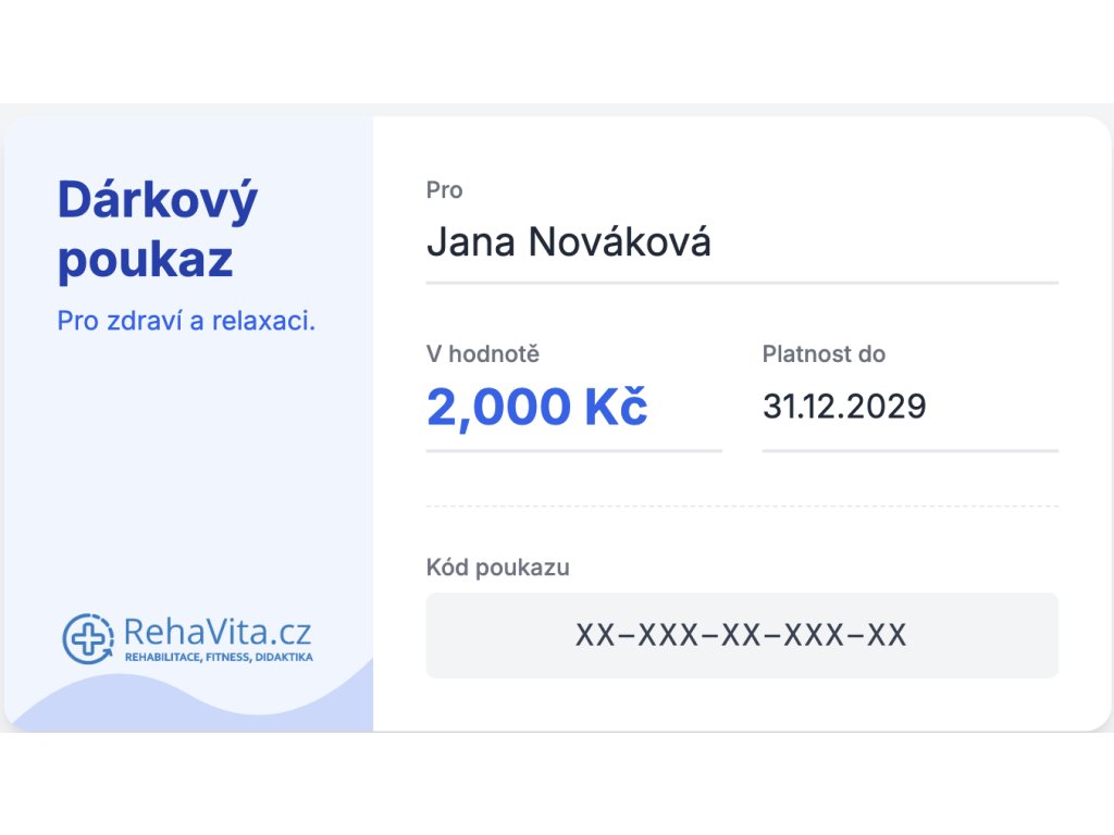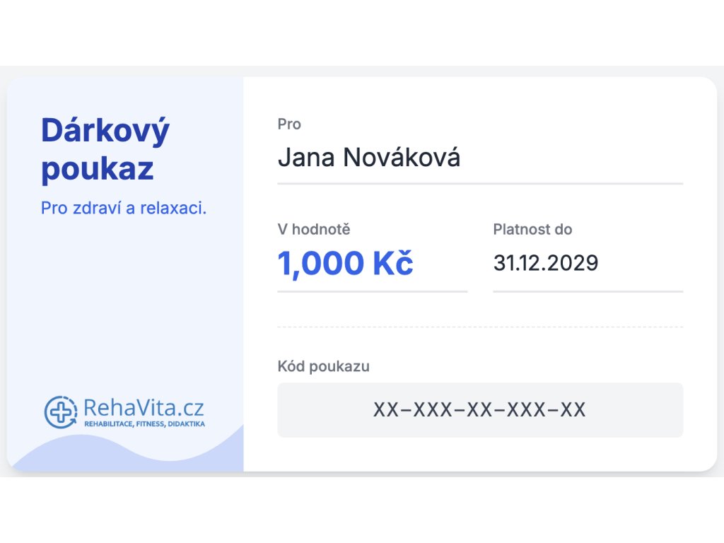 Dárkový poukaz RehaVita ve zvolené hodnotě představuje univerzální a administrativně nenáročný benefit pro jednotlivce i firmy. Umožňuje obdarovanému čerpat z kompletní nabídky rehabilitačních pomůcek, fitness vybavení a didaktických hraček dostupných na RehaVita.cz. Hodnota poukazu je nastavena dle zvolené varianty.