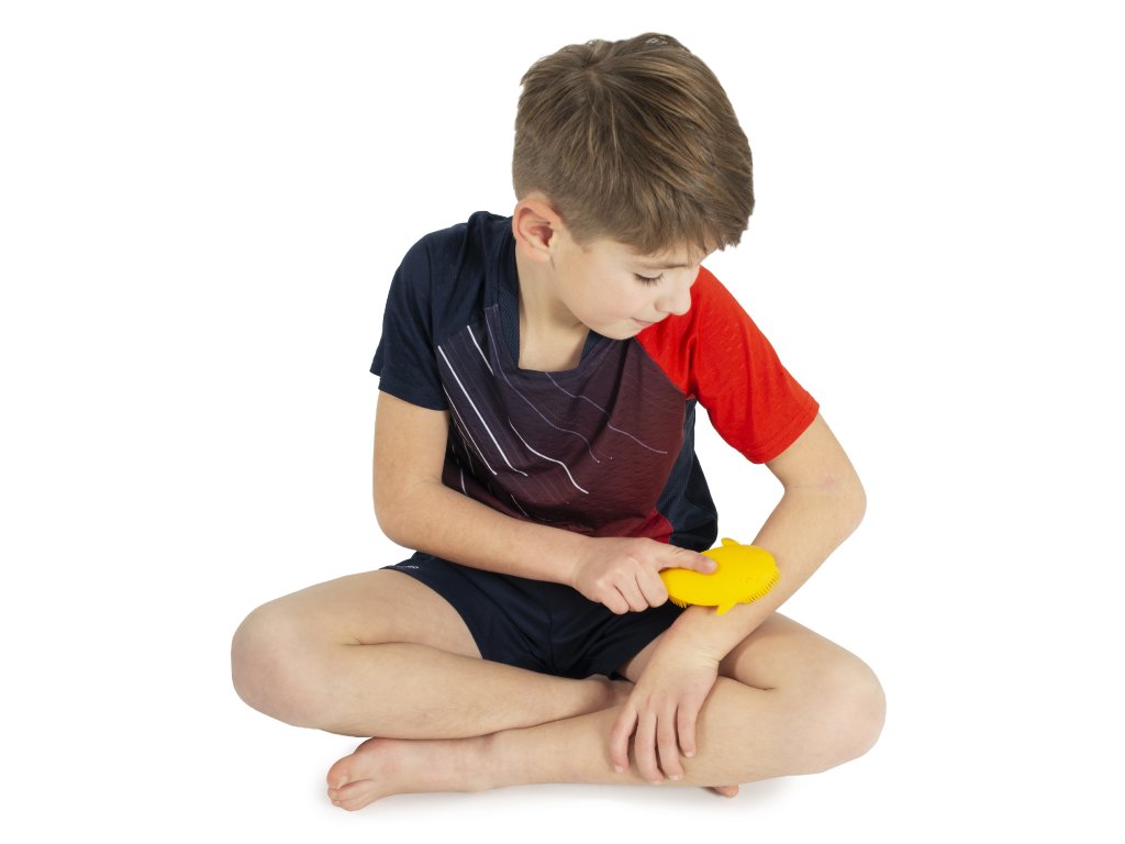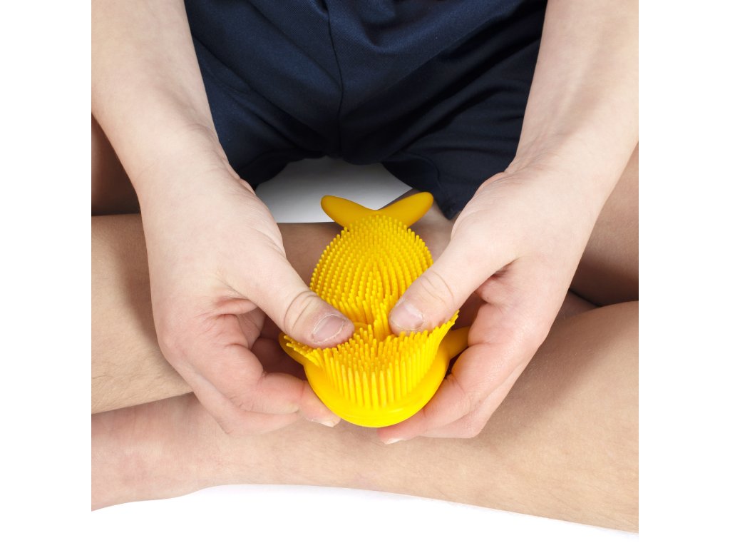 Stimove taktilní silikonový kartáč – Animal Therapy Brush Whale – patří do řady pomůcek určených pro senzorickou terapii. Semi-rigid silikonové štětiny kloužou po pokožce i oděvu a poskytují rovnoměrný tlak, který buď uklidňuje při hypersenzitivitě, nebo stimuluje při snížené citlivosti.